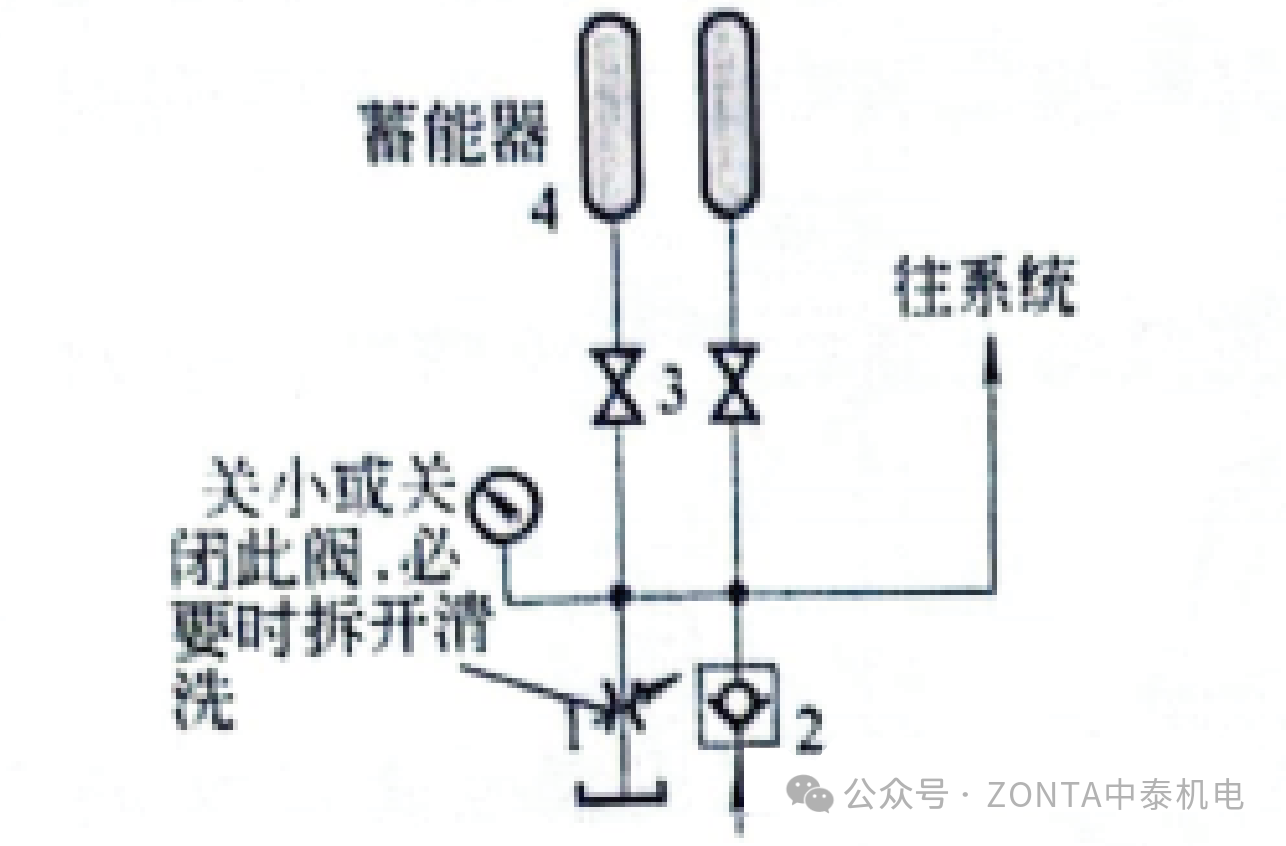 1一泵;2-卸荷溢流閥;3-蓄能器