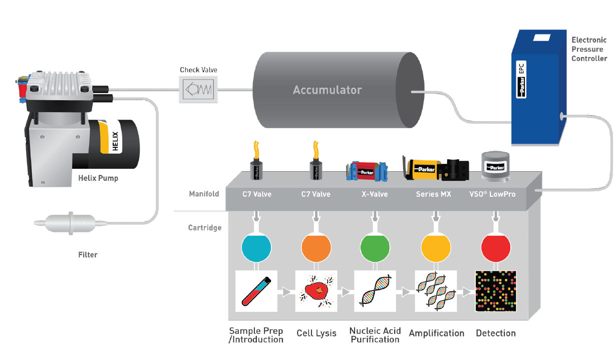 設(shè)計(jì)POCT設(shè)備時(shí),選擇合適的合作伙伴可以加速研發(fā)及產(chǎn)品上市時(shí)間。派克在過(guò)去幾十年為生命科學(xué)市場(chǎng)提供大量尺寸小、重量輕、集成化的系統(tǒng)解決方案,旗下產(chǎn)品廣泛,涵蓋微型泵、微型比例閥、微型電磁閥等精密流體解決方案,并能提供整套流體子系統(tǒng)或組件的預(yù)組裝與測(cè)試,以滿足POCT設(shè)備應(yīng)用需求。