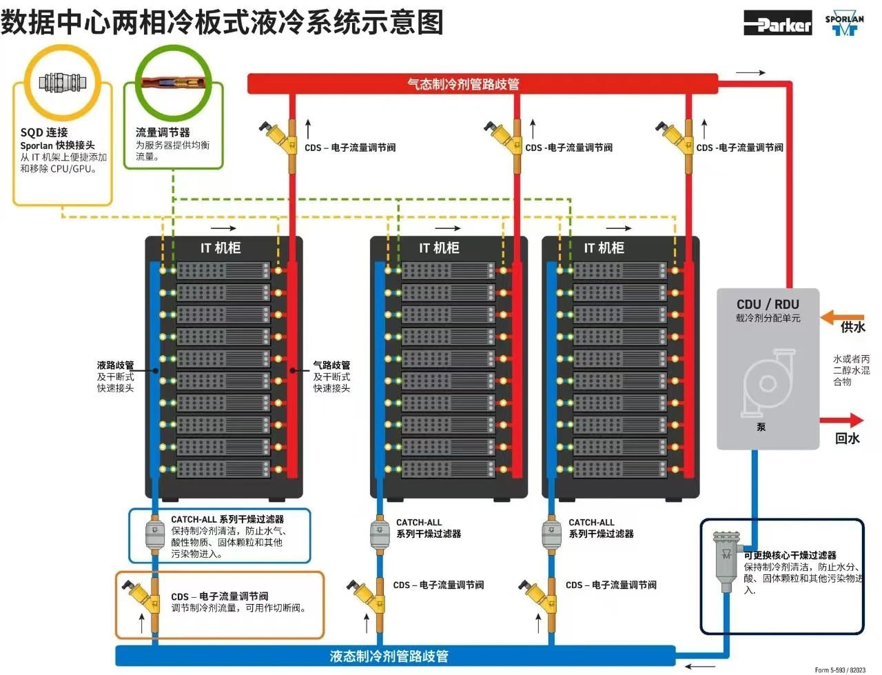 作為運動與控制領(lǐng)域的先行者,派克漢尼汾積極跟進數(shù)據(jù)中心冷卻系統(tǒng)的前沿技術(shù)探索,正在與多家國際服務(wù)器、熱管理系統(tǒng)供應(yīng)商開展兩相冷板式液冷技術(shù)探索,旨在攜手客戶合作共贏,為信息化、智能化、商業(yè)化的未來算力市場保駕護航!