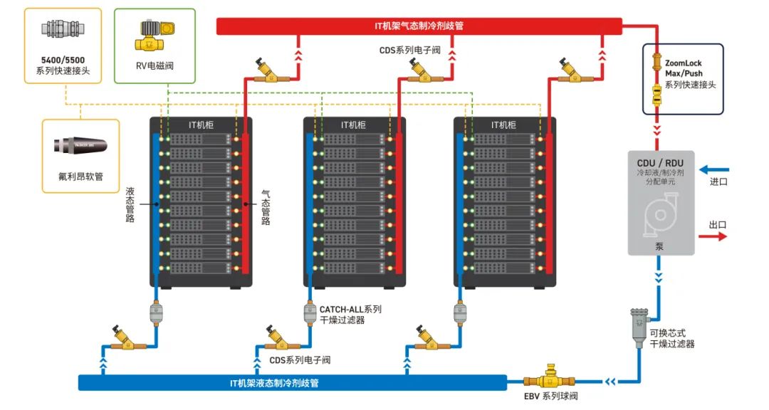 作為解決數(shù)據(jù)中心散熱問題的 “神兵利器”,液冷技術(shù)的創(chuàng)新與突破正引領(lǐng)數(shù)據(jù)中心邁向綠色高效的新征程。從冷板到閥塊分水模塊,再到CDU,派克漢尼汾能為單相冷板式液冷系統(tǒng)提供全面解決方案,實(shí)現(xiàn)無泄漏連接的同時(shí),全力提升液冷系統(tǒng)運(yùn)行效率: