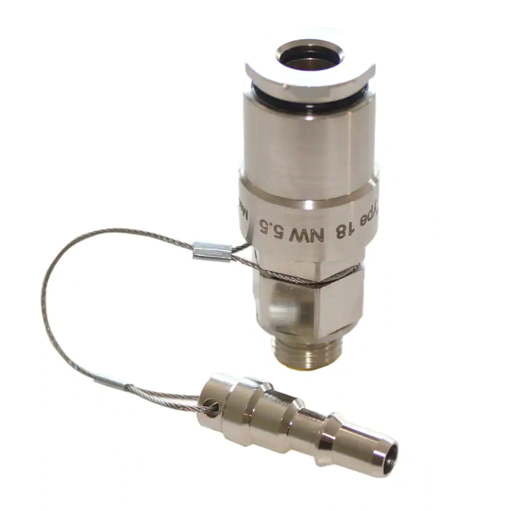 派克的18系列是一款快換母頭,其公頭外形設計符合ISO 6150 C標準要求。這款快換接頭緊湊設計和單手操作給人留下了深刻的印象-即使在難以接近的地方,也可以用一只手進行連接和斷開。