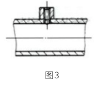 圖3所示為液壓缸缸筒,缸筒上的螺紋孔常安排在焊接工序之后加工,這樣就不可避免地要在螺紋孔出口與缸筒內(nèi)壁的交界處產(chǎn)生毛刺。為清除毛刺,必須設(shè)計制作專用刀具對其進(jìn)行加工,達(dá)到光滑過渡的目的。圖4為專用刀具的結(jié)構(gòu)。使用時,先將刀桿從螺紋孔中插人,然后從側(cè)面將刀頭安裝在刀桿上,旋轉(zhuǎn)刀桿即可將毛刺除掉并加工出光滑完整的表面。