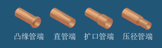 制冷銅管,鋁材,軟質(zhì)不銹鋼, 外形包括凸緣管端,直管端,擴(kuò)口管端,壓 徑管端 |