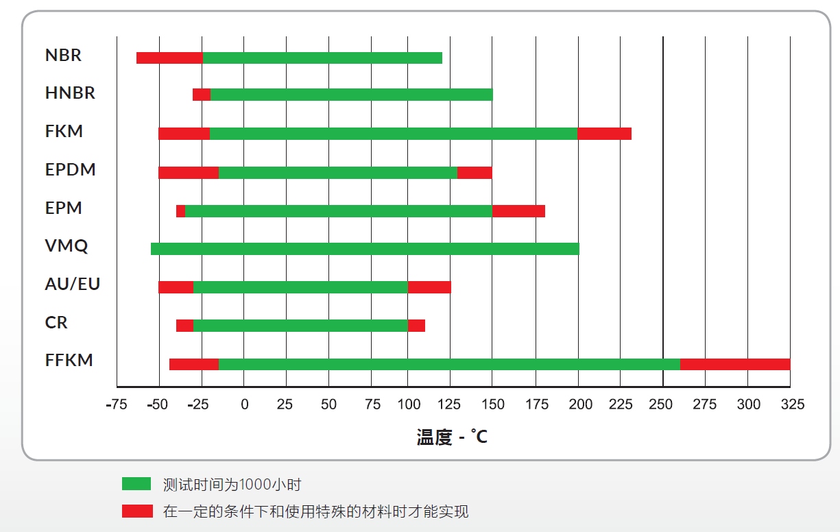 一般O型圈可以在一個(gè)很寬的溫度范圍內(nèi)良好的工作。但這個(gè)溫度范圍是有限的,我們最關(guān)注溫度的上限值和下限值。